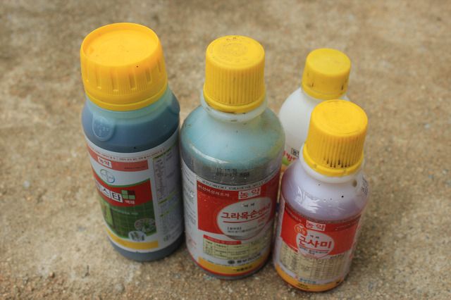 제초제는 모두 노란색이었어요.