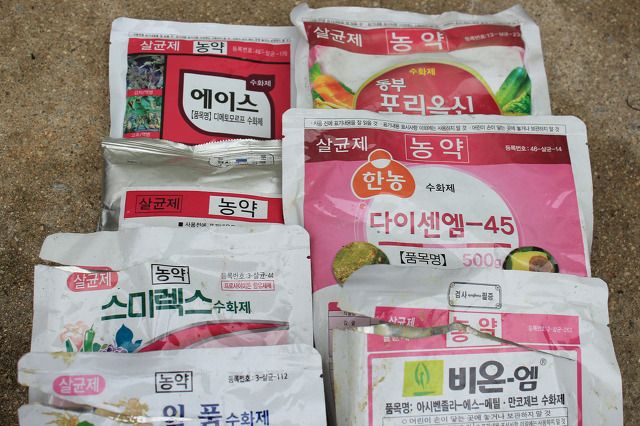 농약은 모두가 이렇게 색깔 별로 구분을 짓고 있었어요.