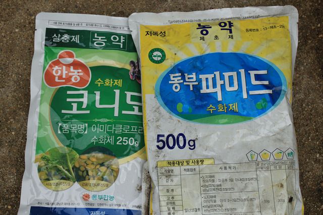 살충제는 녹색, 제초제는 노랑....